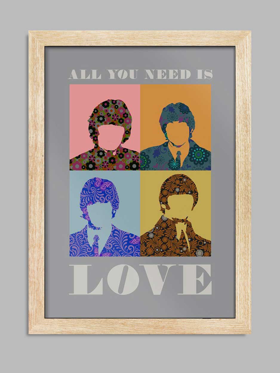 All You Need Is Love Music Poster Print is printed on a smooth 230g stock and available unframed or framed in a wooden frame with clarity+ acrylic.