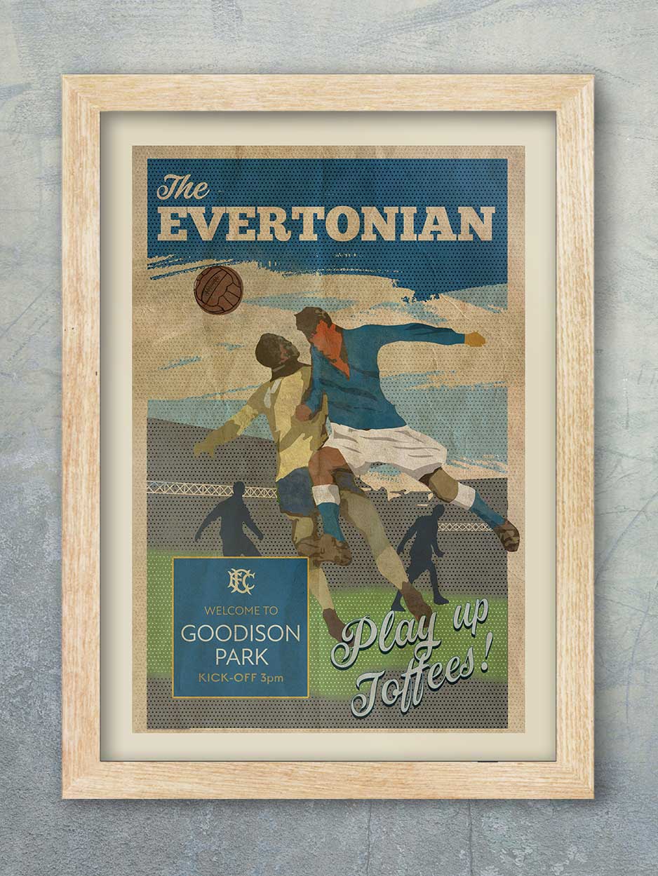 Produced in the style of the old 50s/60s Match Day programmes, this poster is a celebration of the culture of Everton - The Toffees!