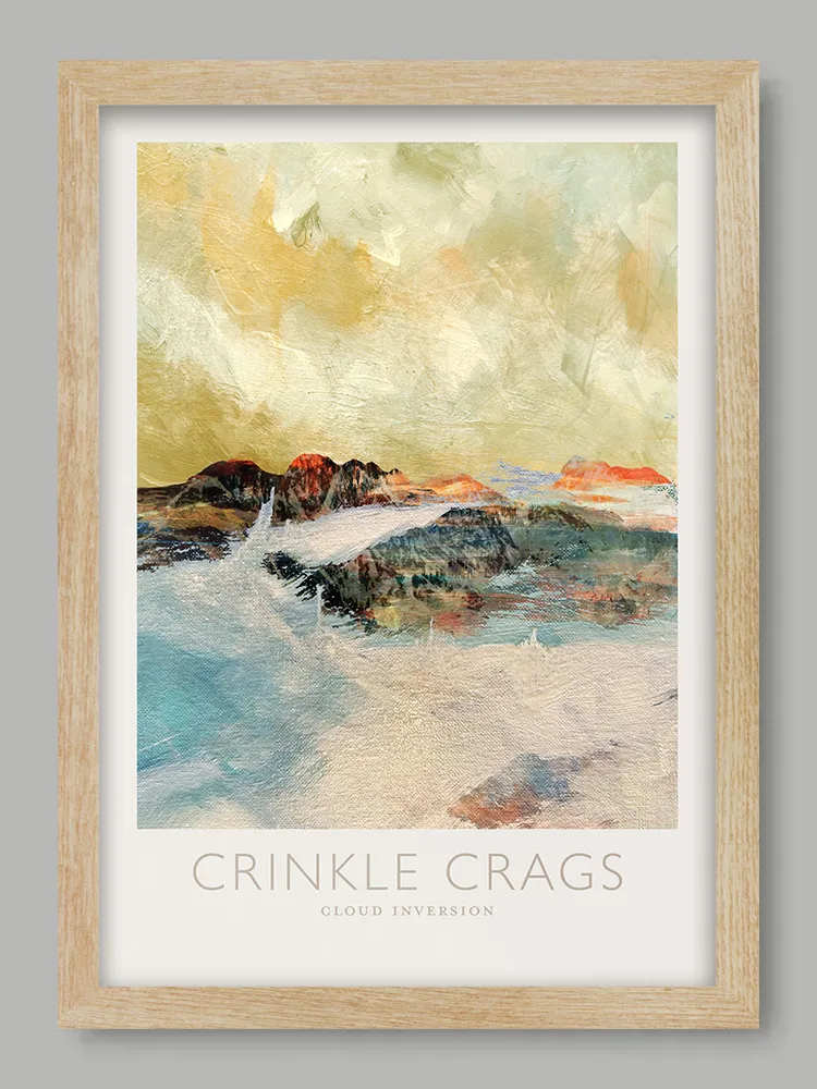 Crinkle Crags Cloud Inversion Ā - Lake District Poster Print is printed on a smooth 230g stock and available unframed or framed in a wooden frame with clarity+ acrylic.