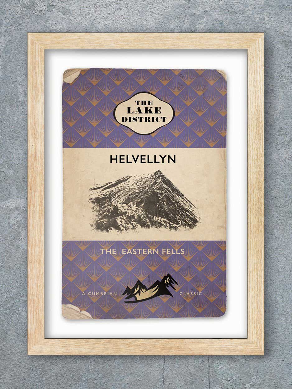 Helvellyn. Recently voted the Number 1 walk in the UK. Admired both for it's beauty and the challenge of Striding Edge.Ā Our Helvellyn Poster Print has been created in our Cumbrian Classics styling, inspired by the mid-century Penguin book designs.