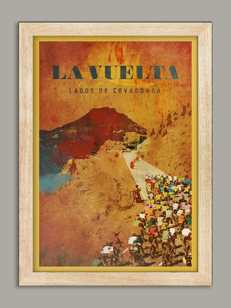 Vuelta a Espana Cycling Poster Print is printed on a smooth 230g stock and available unframed or framed in a wooden frame with clarity+ acrylic.