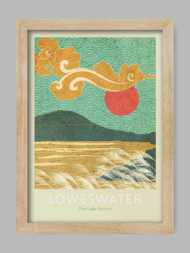Loweswater - Lake District Poster Print. Beautiful scenic lake in the west of the National Park. Our Loweswater - Lake District Poster Print is designed using colours and patterns which show off the natural beauty of this outstanding area of the Lake District National Park.