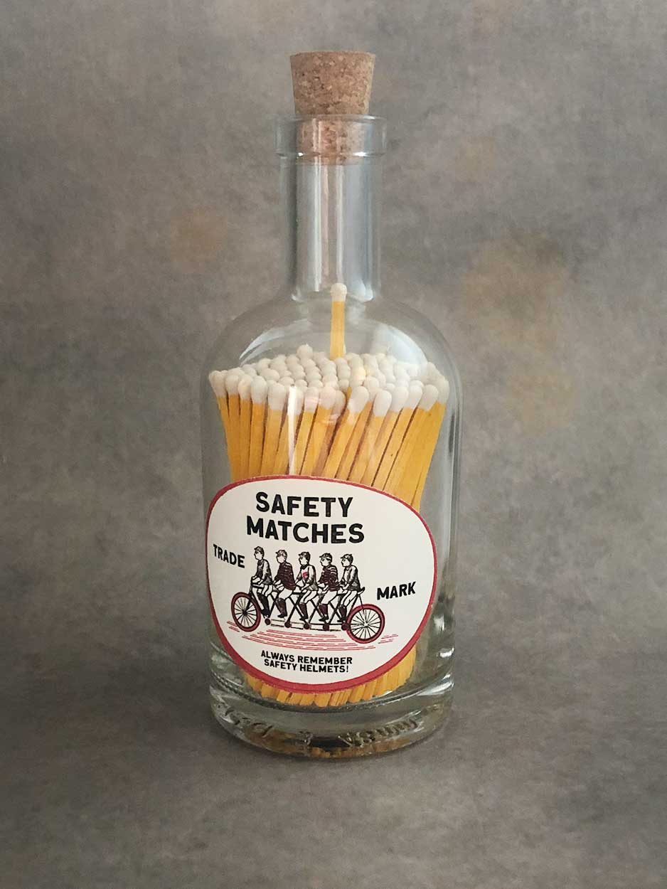 We've always loved stocking these glass jars full of long length luxury matches. The strike is on the bottom of the jar.