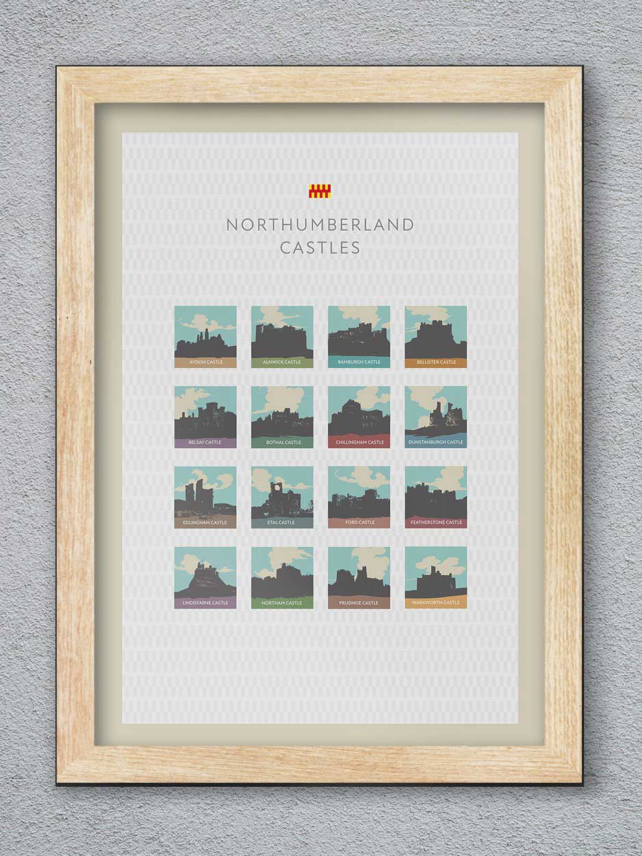 Our Northumberland Castles Poster Print features a selection of the castles that are so special to Northumberland. There are actually over 70 sites but this poster celebrates the castles special for their historic value.