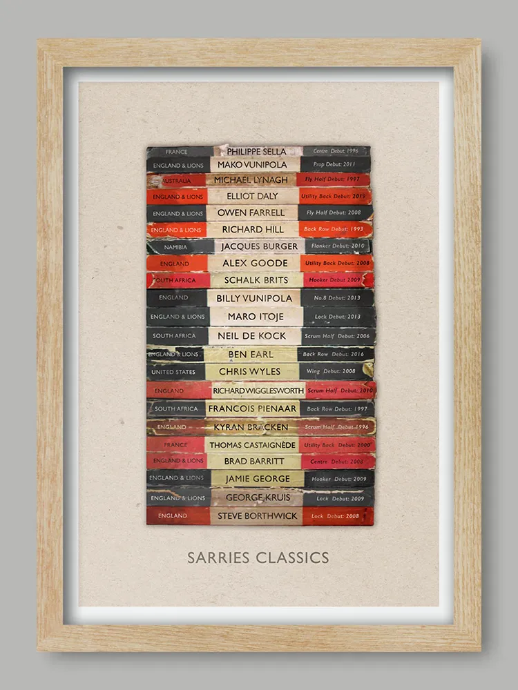 Sarries Classics - Rugby poster printĀ is printed on a smooth 230g stock and available unframed or framed in a wooden frame with clarity+ acrylic.