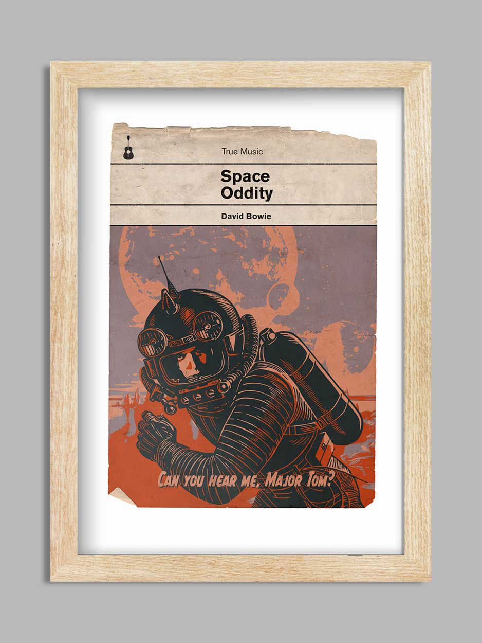 Space Oddity Music Poster Print is printed on a smooth 230g stock and available unframed or framed in a wooden frame with clarity+ acrylic.